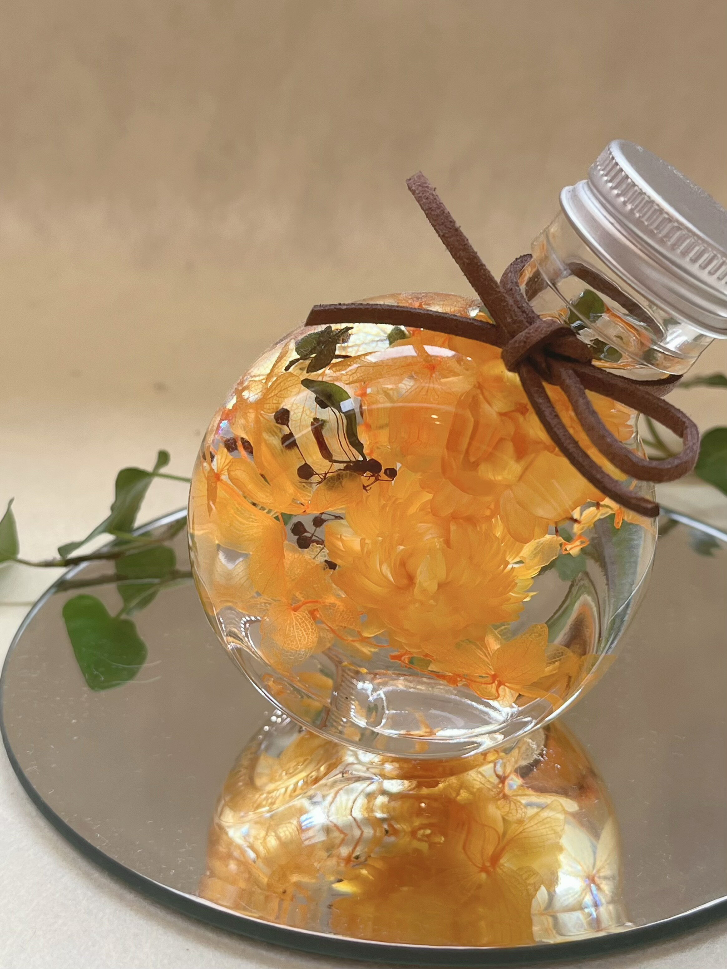 【ハーバリウム】【1000円ポッキリ ギフト】プリザーブドフラワー ガラスボトル フラスコ インテリア 雑貨 プチギフト 母の日 お誕生日 お祝い 卒業 退職 餞別 オレンジ